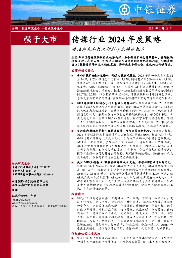 中银证券:传媒行业2024年度策略:关注内容和技术创新带来的新机会.pdf