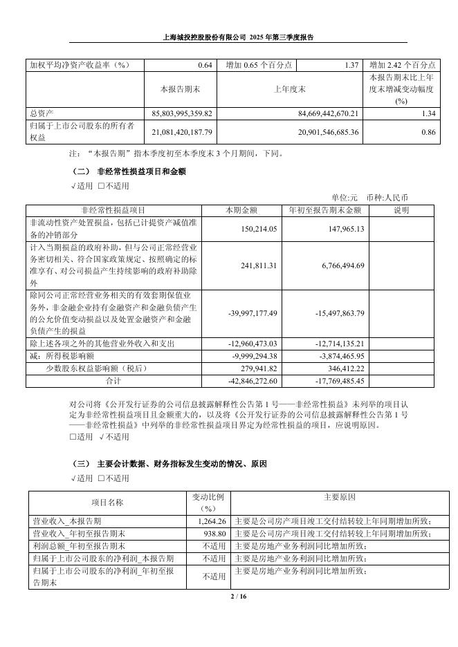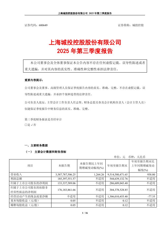 600649-城投控股:上海城投控股股份有限公司2025年第三季度报告.pdf