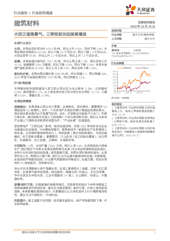 天风证券:建筑材料行业研究周报:水泥正值高景气,三季报板块延续高增速.pdf