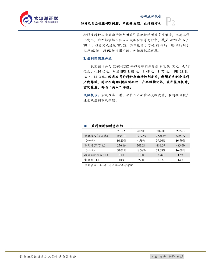 太平洋证券:皇马科技(603181)-特种表面活性剂+MS树脂,产能释放期,业绩稳增长.pdf