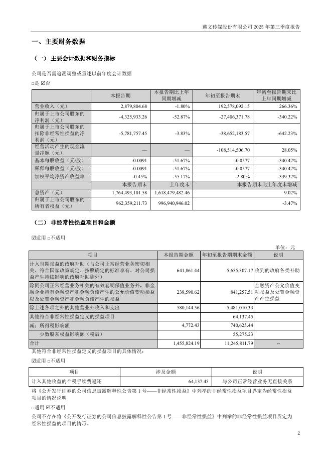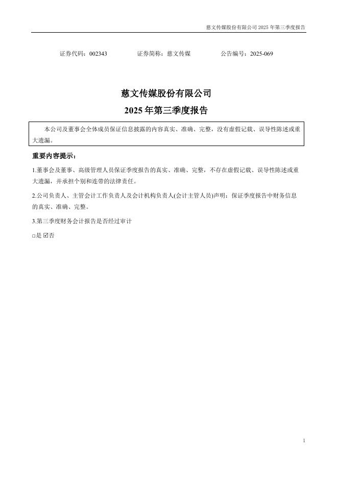 002343-慈文传媒:2025年三季度报告.pdf