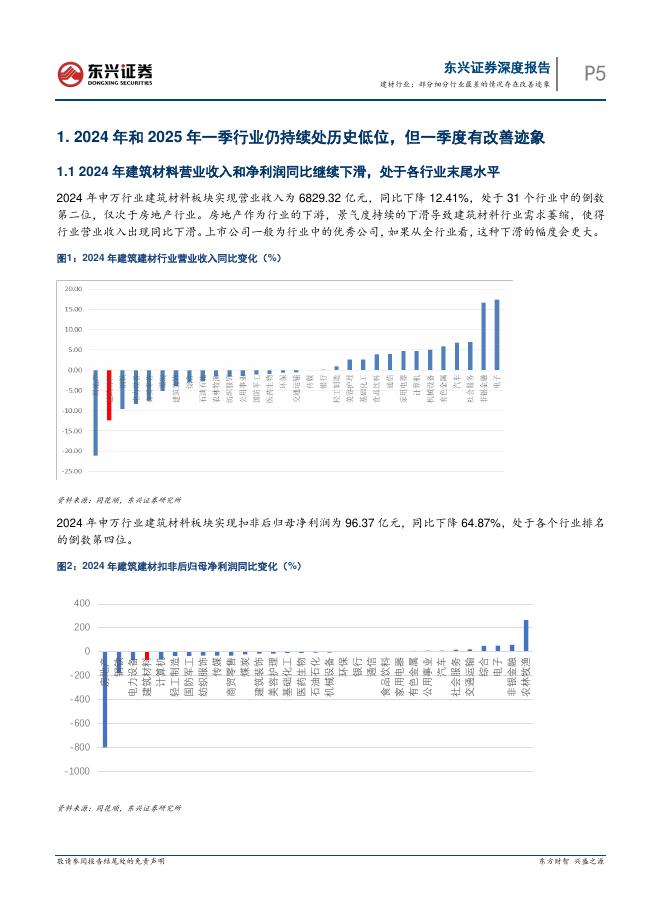 东兴证券:建材行业2024年和2025年一季报综述:部分细分行业最差的情况存在改善迹象.pdf