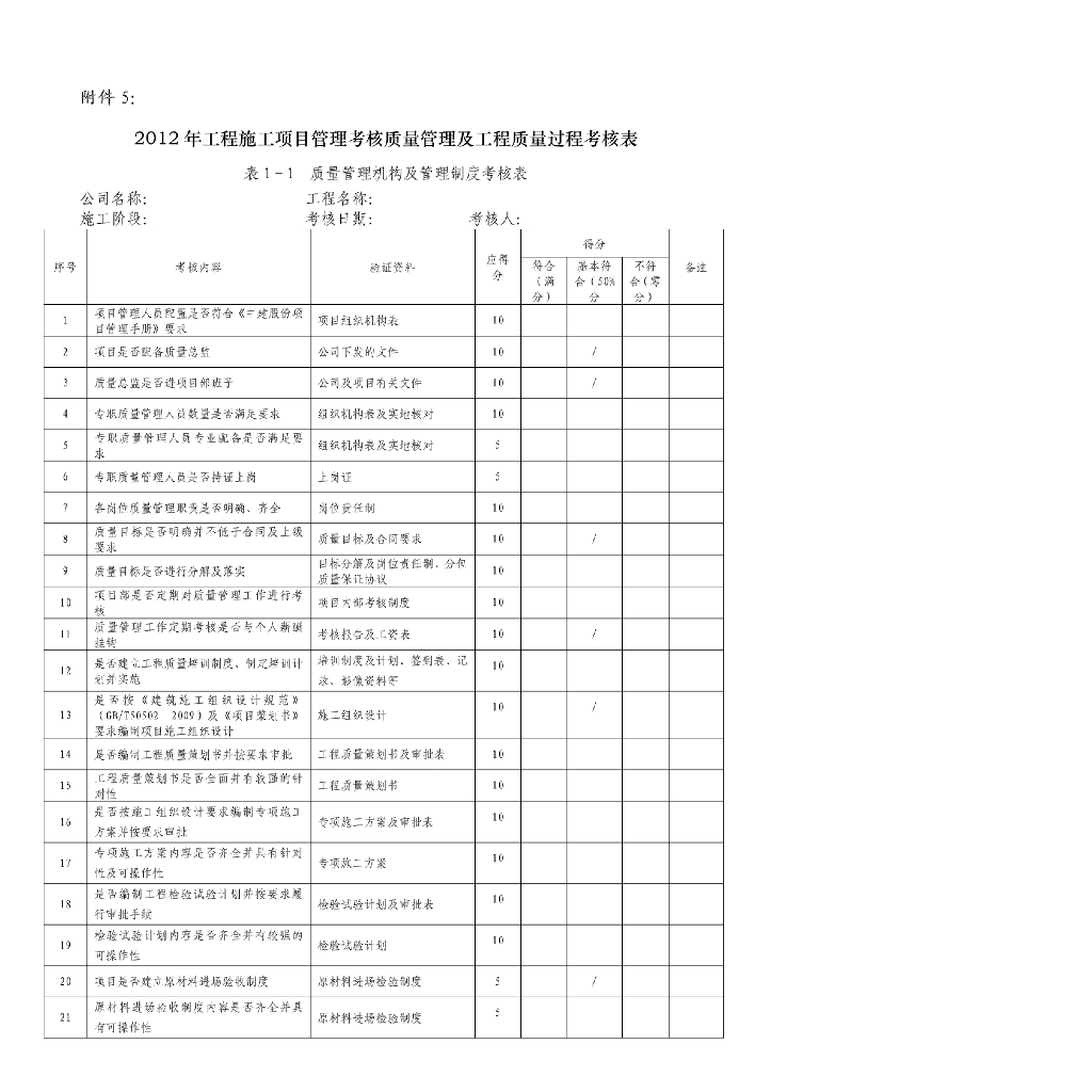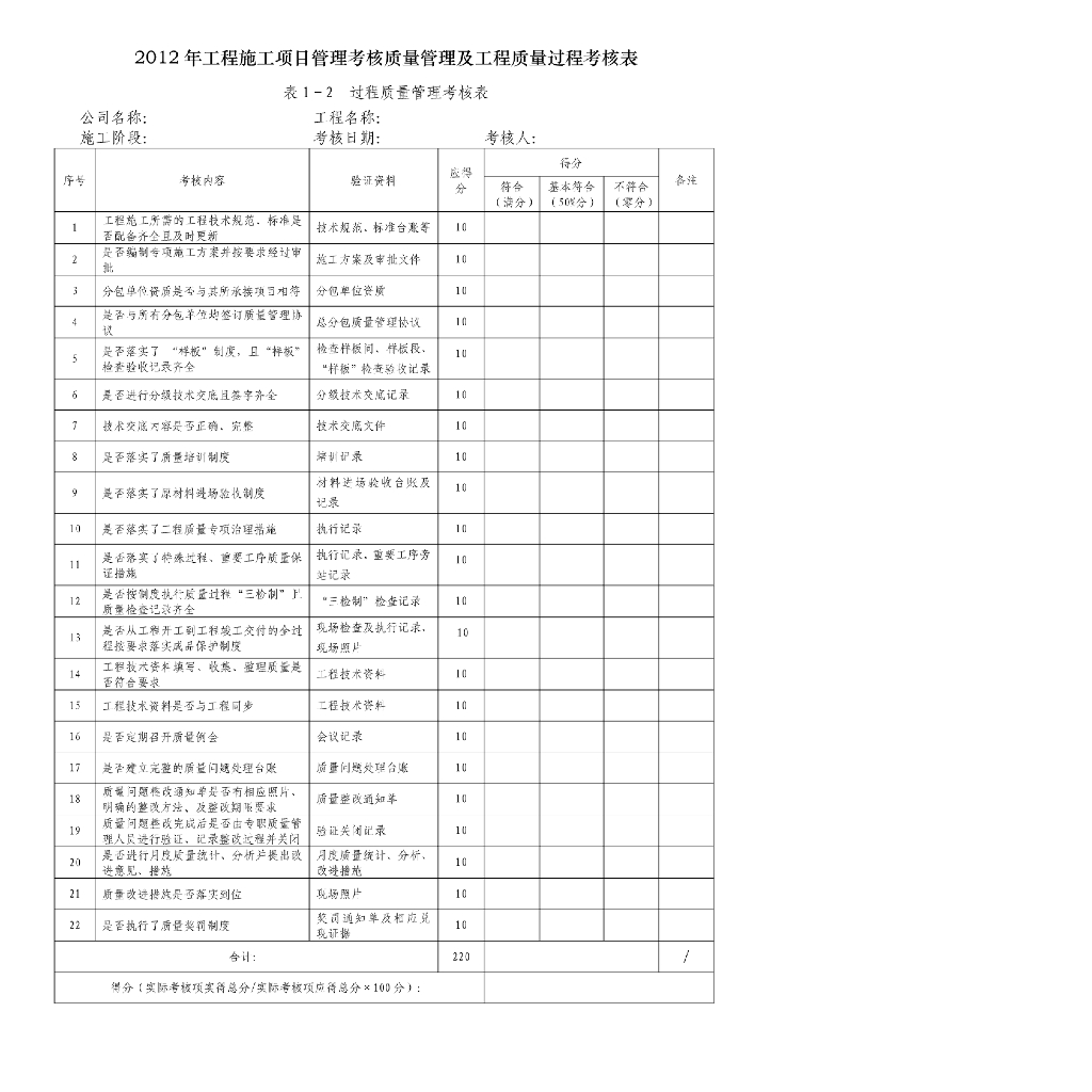 工程施工项目管理考核质量管理及工程质量过程考核表.pdf