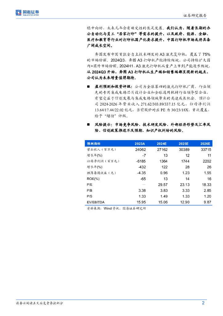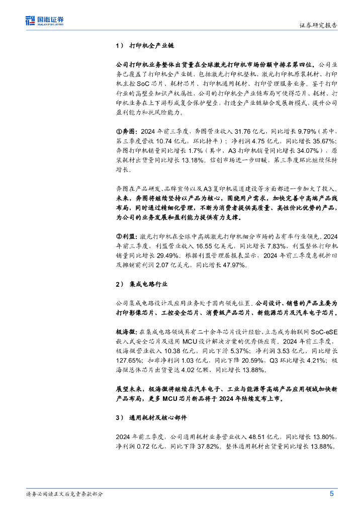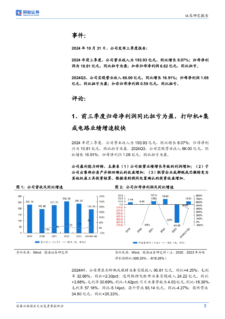 国海证券:纳思达(002180)-2024年三季报点评:前三季度业绩高增,A3打印机产能持续爬坡.pdf