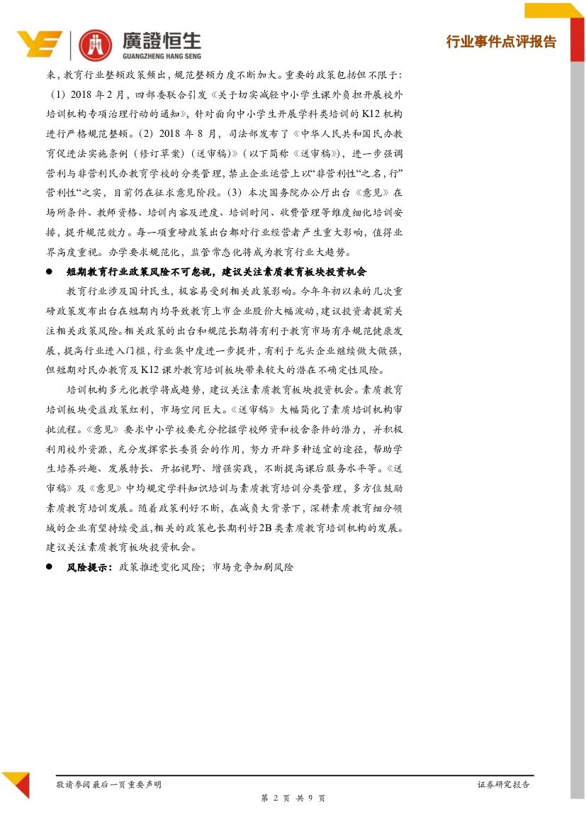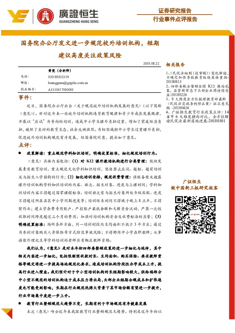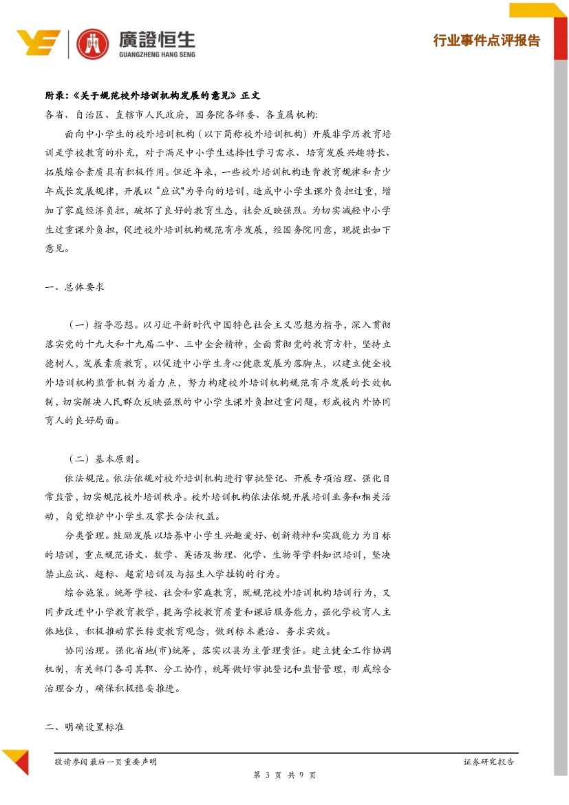 广证恒生证券研究所:教育行业事件点评报告:国务院办公厅发文进一步规范校外培训机构,短期建议高度关注政策风险.pdf