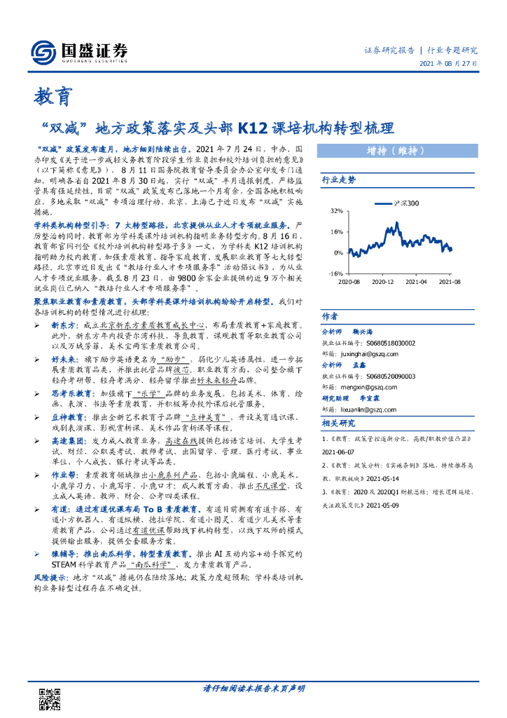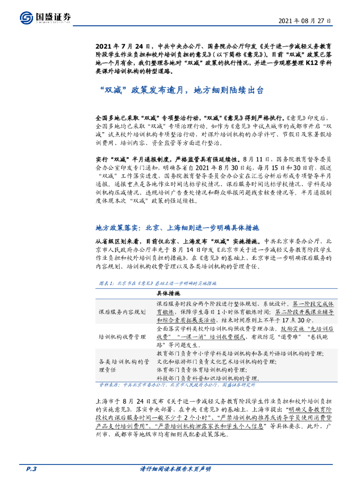 国盛证券:教育行业专题研究:“双减”地方政策落实及头部K12课培机构转型梳理.pdf