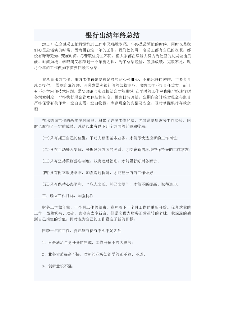 银行出纳员年终总结.doc