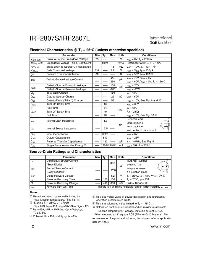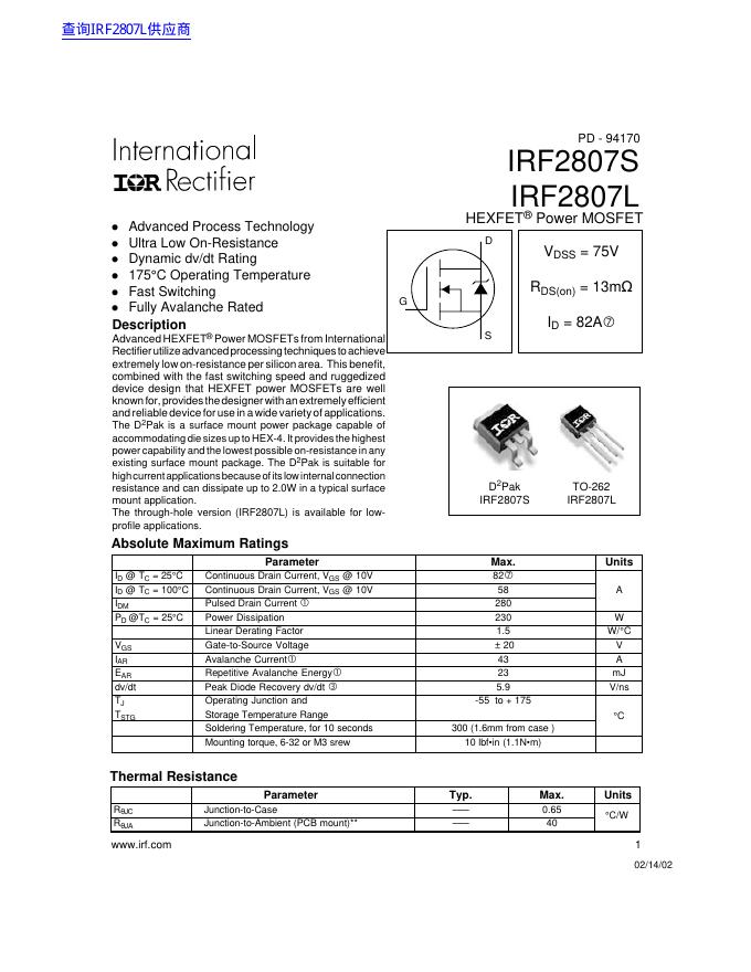 International IOR Rectifier IRF2807S IRF2807L 数据手册.pdf