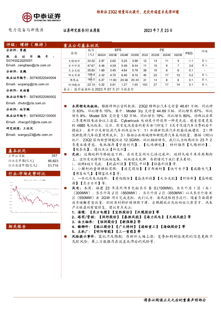 中泰证券:电力设备与新能源行业周报:特斯拉23Q2销量环比提升,光伏终端需求或将回暖.pdf