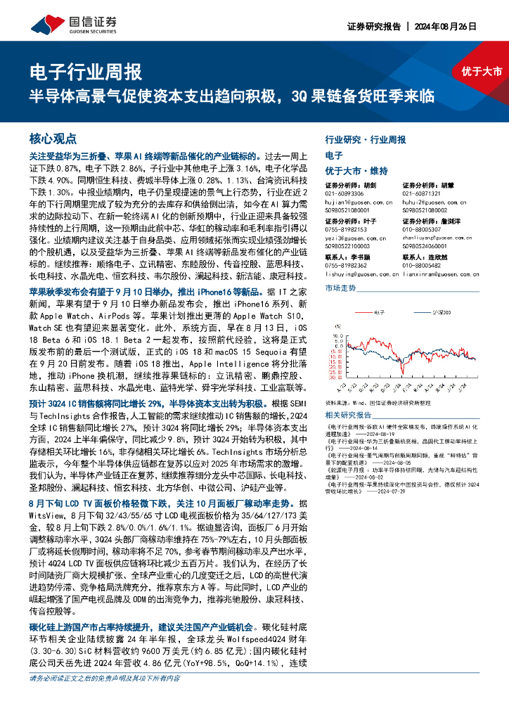 国信证券:电子行业周报:半导体高景气促使资本支出趋向积极,3Q果链备货旺季来临.pdf
