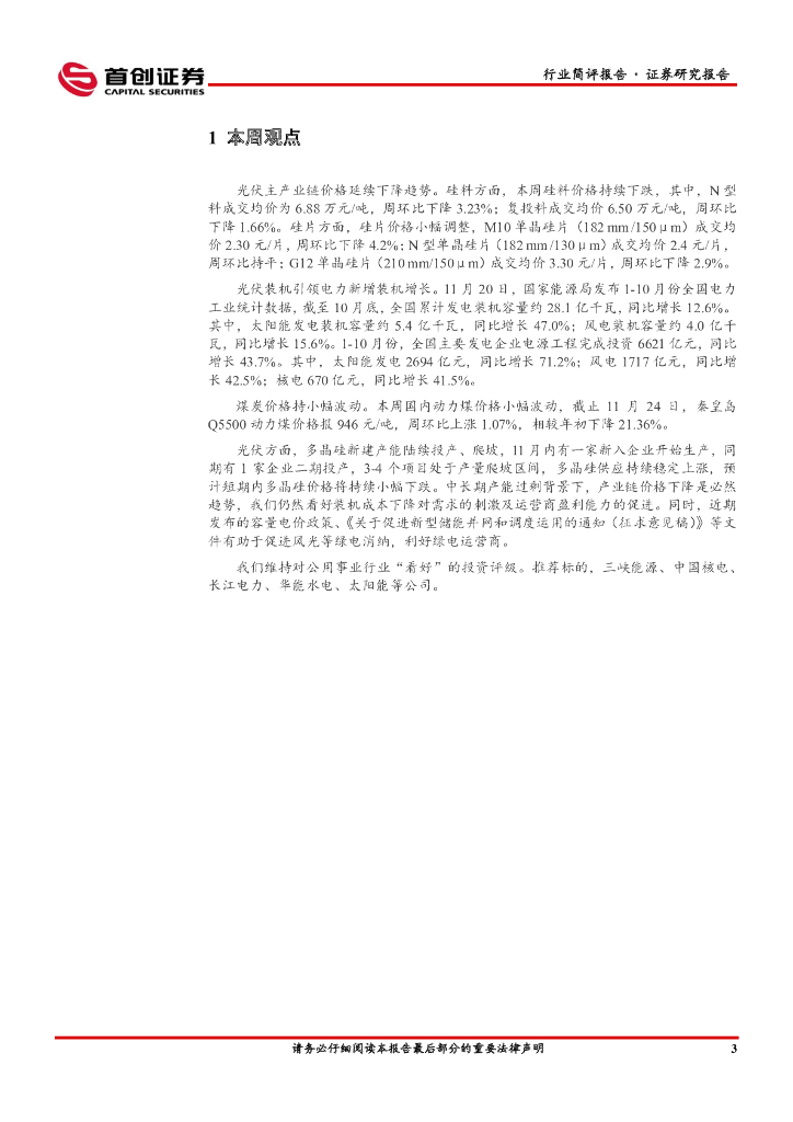 首创证券:公用事业行业简评报告:光伏装机引领电力新增装机增长.pdf