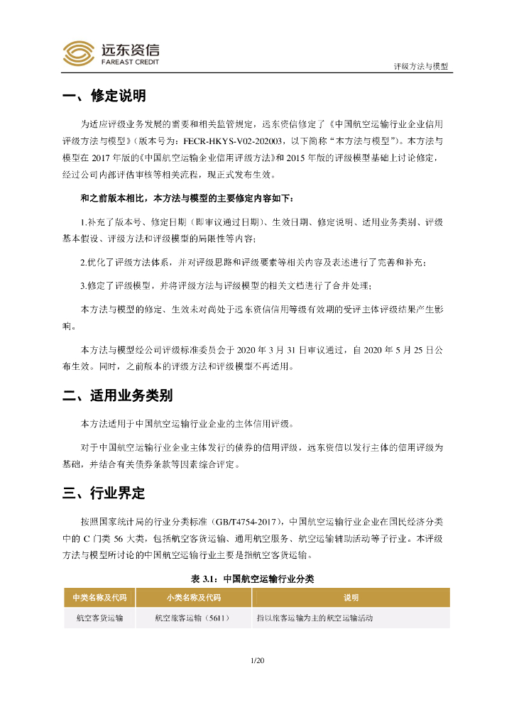 远东资信:中国航空运输行业企业信用评级方法与模型.pdf