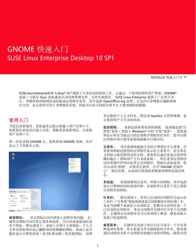 NOVELL GNOME SUSE Linux Enterprise Desktop 10 SP1 快速入门.pdf