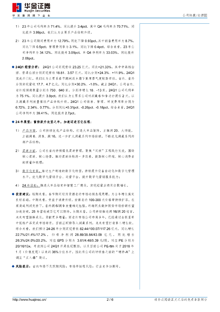华金证券:迎驾贡酒(603198)-24Q1开局表现靓丽,产品升级结构延续.pdf