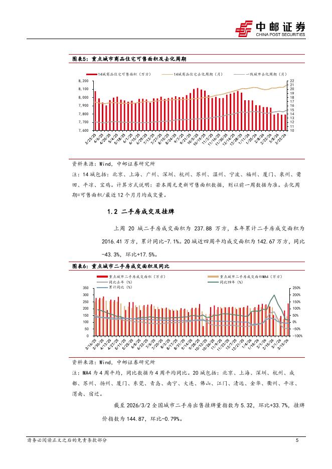 中银证券:房地产行业周报:房地产行业第7周周报(2026年2月7日-2026年2月13日)新房、二手房成交环比降幅扩大、同比由正转负;重庆推出地产新政稳定房地产市场新房成交面积环比降幅扩大、同比由正转负;二手房成交面积环比降幅扩大,同比由