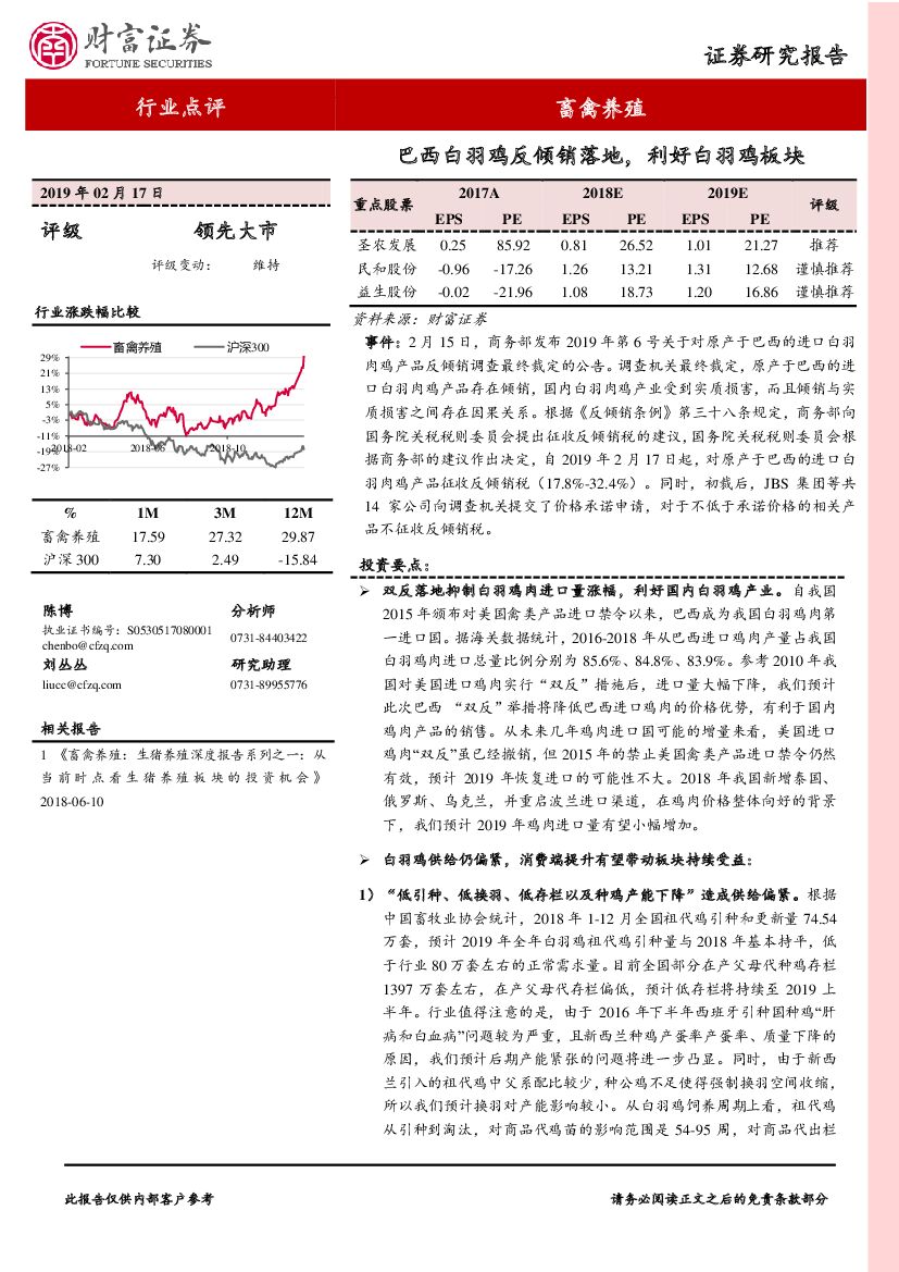 财富证券:畜禽养殖:巴西白羽鸡反倾销落地,利好白羽鸡板块.pdf