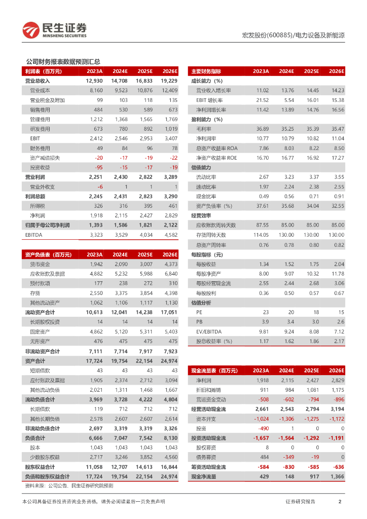 民生证券:宏发股份(600885)-2024年三季报点评:24Q3业绩符合预期,盈利表现良好.pdf