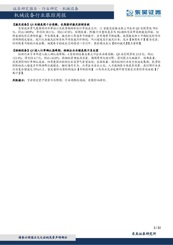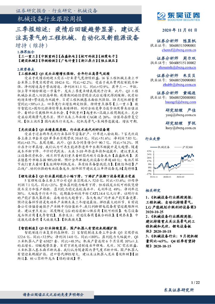 东吴证券:机械设备行业跟踪周报-三季报综述:疫情后回暖趋势显著, 建议关注高景气的工程机械、自动化及新能源设备.pdf