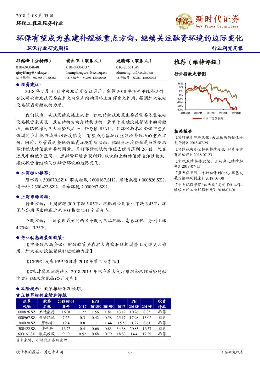 新时代证券:环保行业研究周报:环保有望成为基建补短板重点方向,继续关注融资环境的边际变化.pdf