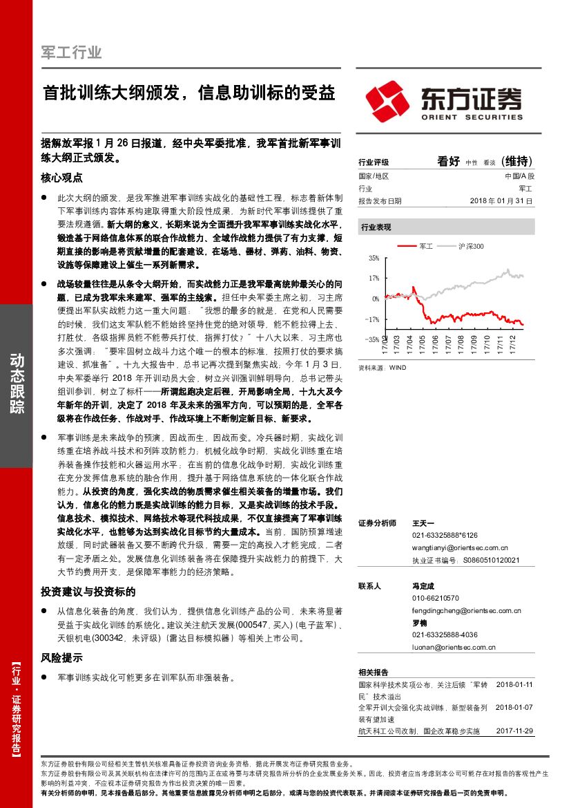 东方证券:军工行业:首批训练大纲颁发,信息助训标的受益.pdf