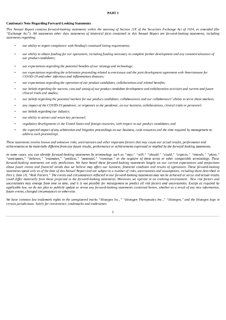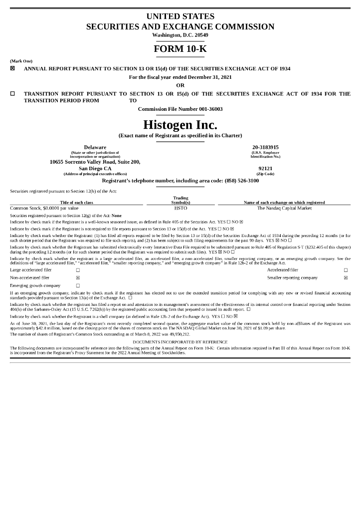 Histogen Inc.(HSTO)2021财年年度报告(英文版).pdf
