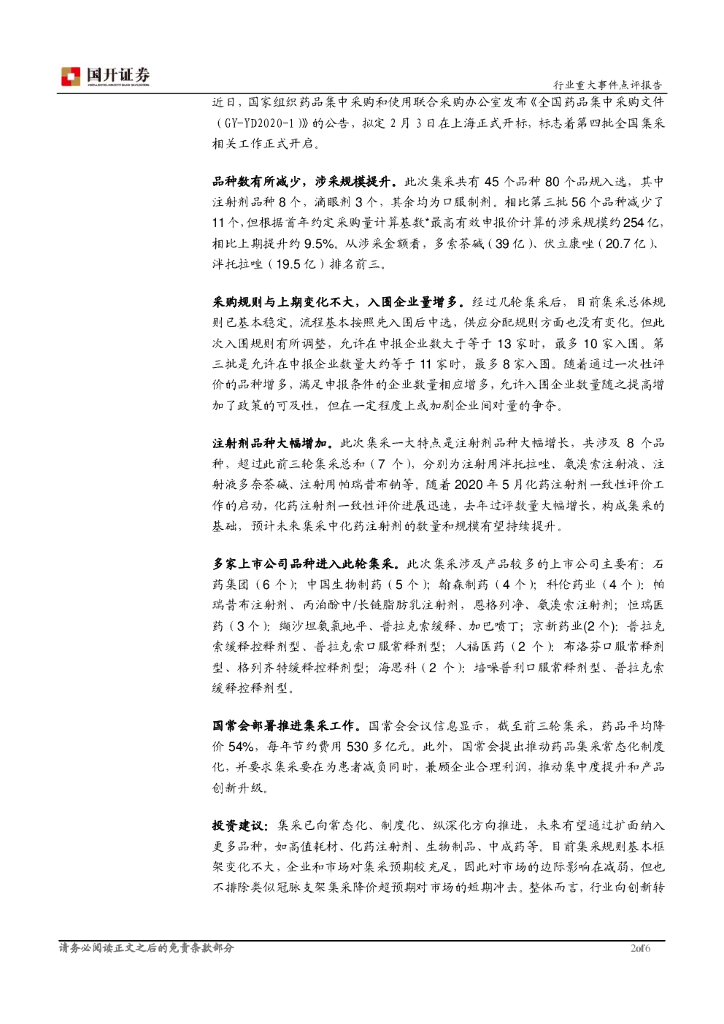 国开证券:医药行业点评报告:第四批化药集采启动,入围企业数量增加.pdf