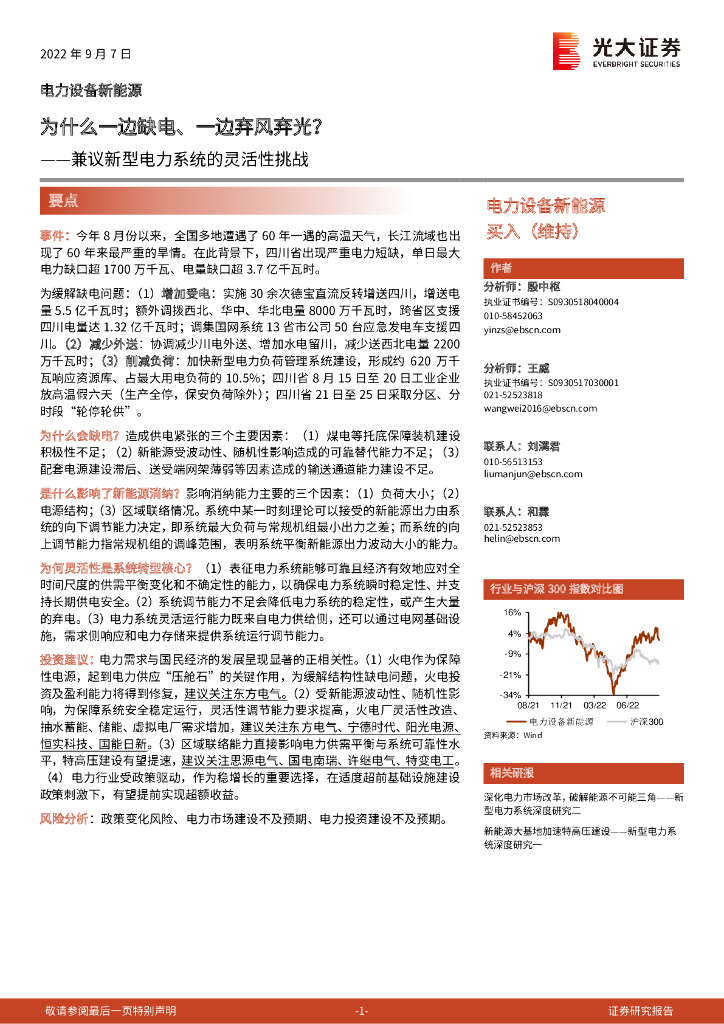 光大证券:电力设备新能源:兼议新型电力系统的灵活性挑战-为什么一边缺电、一边弃风弃光?.pdf