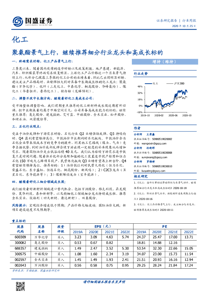 国盛证券:化工行业周报:聚氨酯景气上行,继续推荐细分行业龙头和高成长标的.pdf