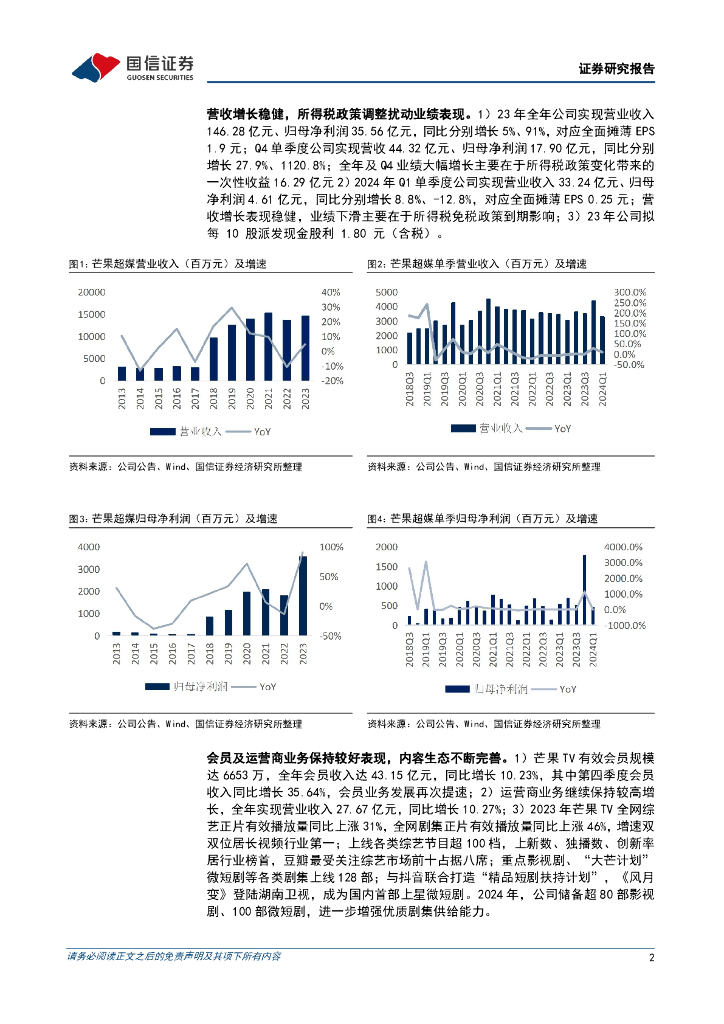 国信证券:芒果超媒(300413)-23年年报及24Q1点评:广告增速向上,内容表现值得期待.pdf