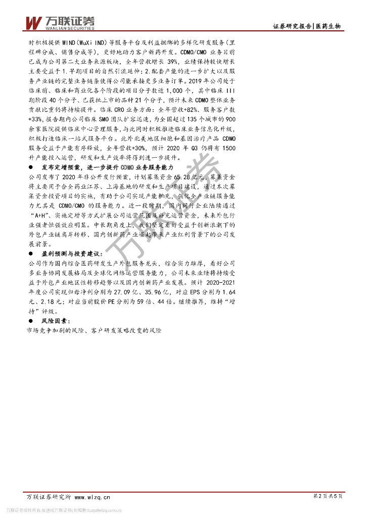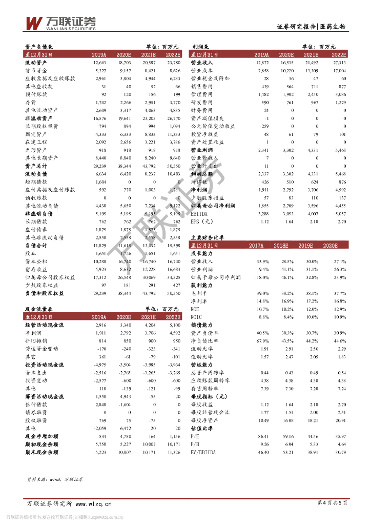 万联证券:药明康德(603259)-2019年报点评:主营业务增长稳健,一体化平台优势凸显.pdf