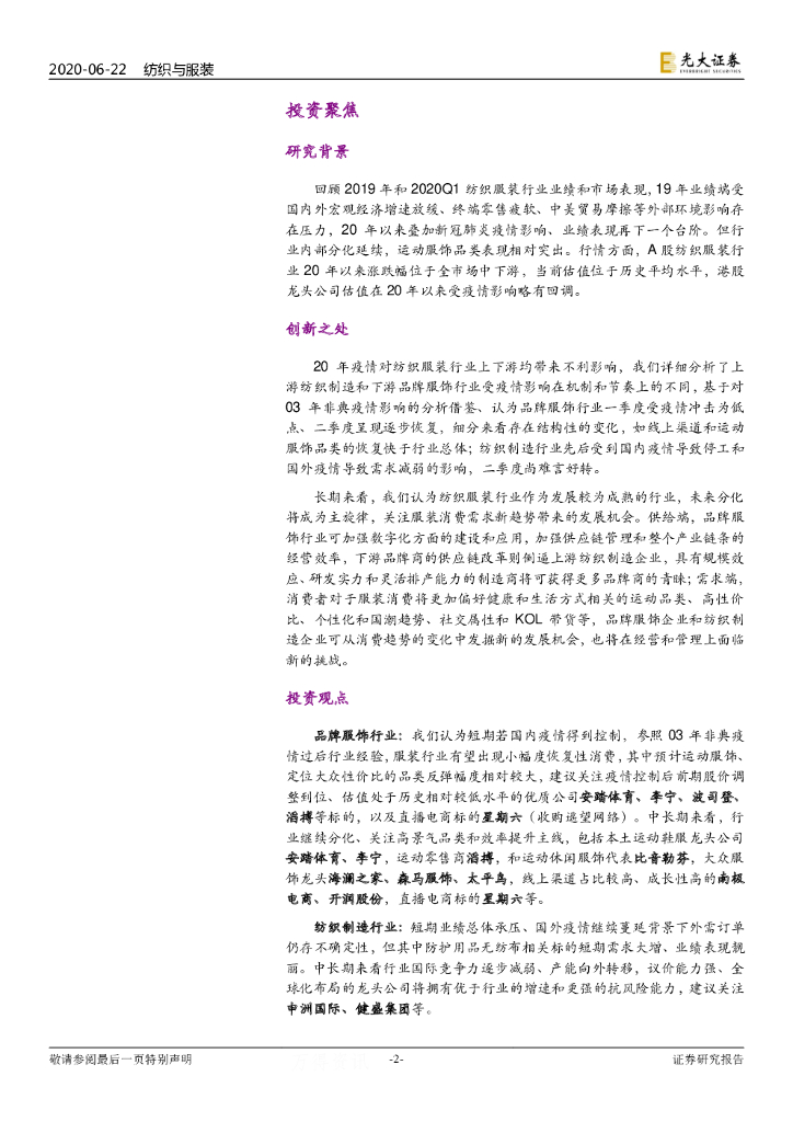 光大证券:纺织服装行业2020年下半年投资策略:行业分化和提效延续,后疫情时代关注结构性机会.pdf