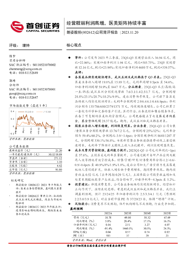 首创证券:朗姿股份(002612)-公司简评报告:经营靓丽利润高增,医美矩阵持续丰富.pdf