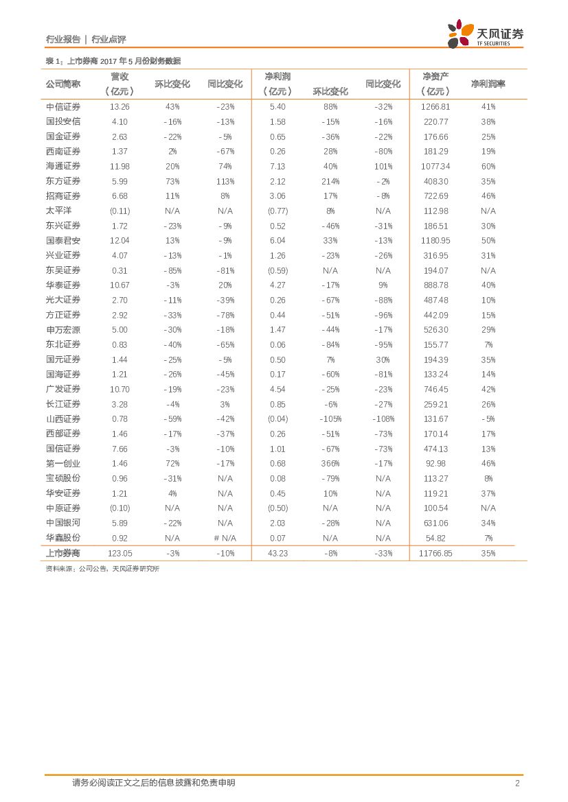 天风证券:证券行业五月财务数据点评:市场因素导致券商业绩承压,净利环比/同比均下滑.pdf