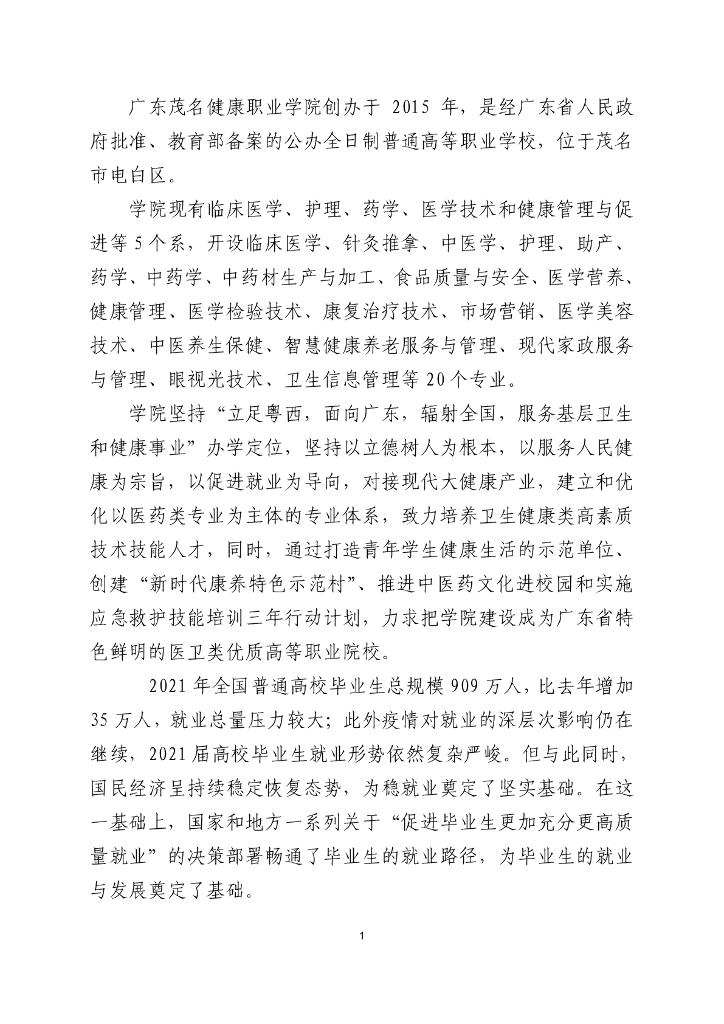 广东茂名健康职业学院2021年就业年度质量报告.pdf