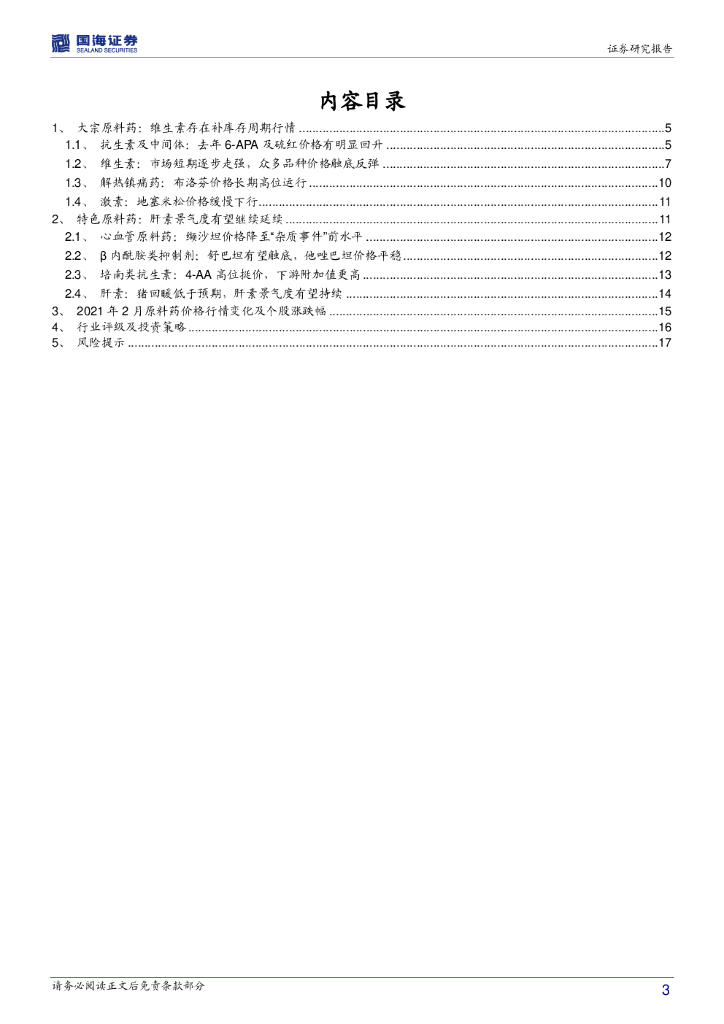 国海证券:医药生物行业原料药月度跟踪报告:原料药板块性价比凸显,短期建议关注维生素补库存周期和肝素景气度延续.pdf