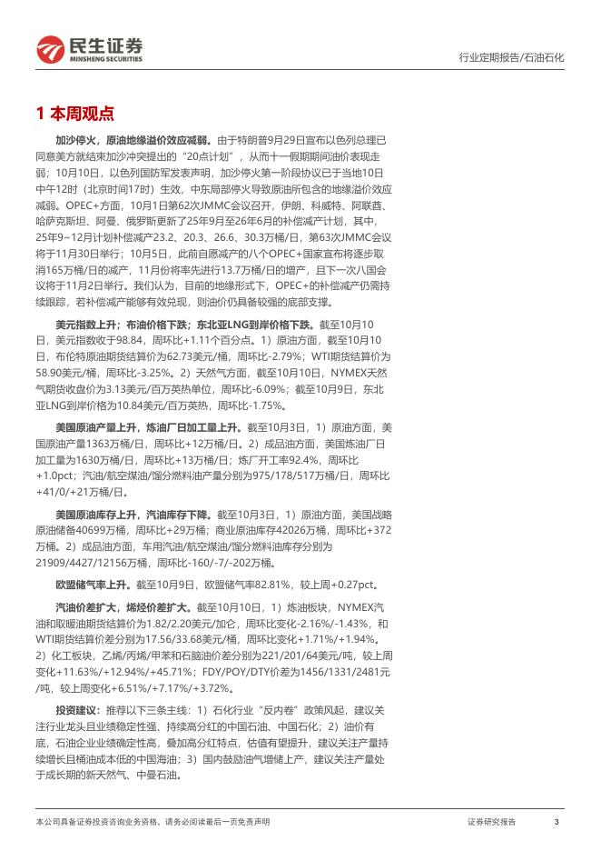 民生证券:石化周报:加沙停火,原油地缘溢价效应减弱.pdf