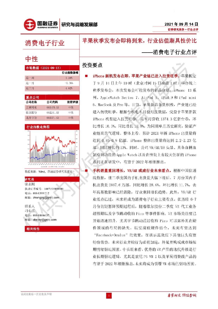 国融证券:消费电子行业点评:苹果秋季发布会即将到来,行业估值渐具性价比.pdf