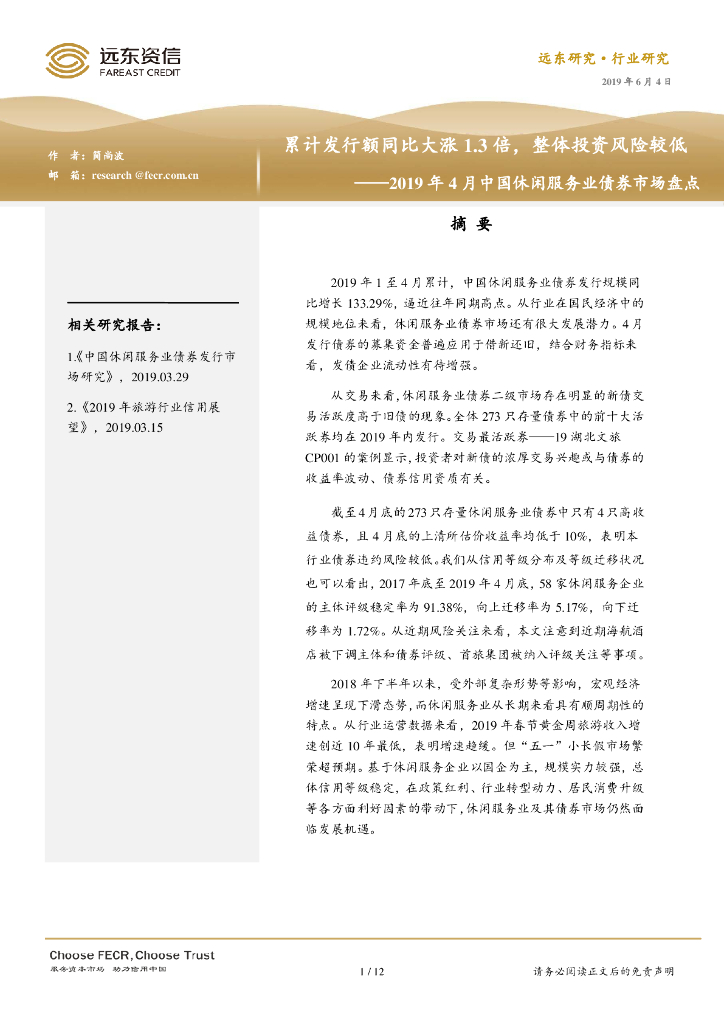 远东资信:2019年4月中国休闲服务业债券市场盘点.pdf