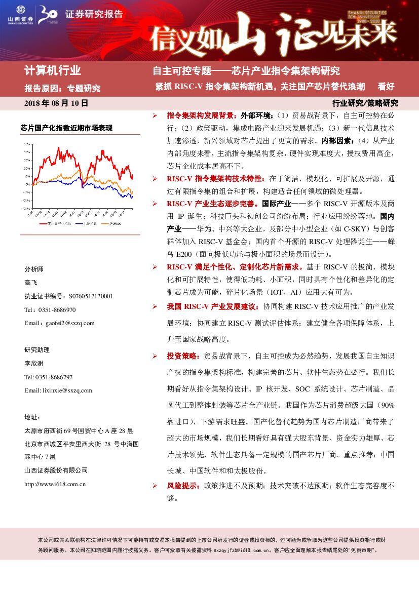 山西证券:计算机行业:自主可控专题——芯片产业指令集架构研究-紧抓RISC-V指令集架构新机遇,关注国产芯片替代浪潮.pdf