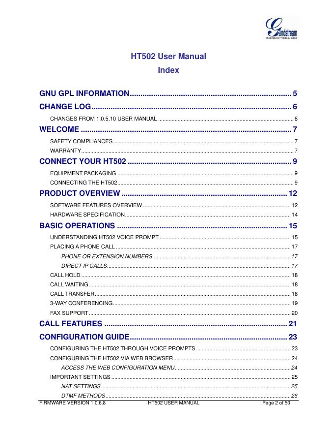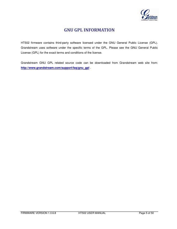 Grandstream Networks, Inc. HT502 Dual FXS Port Analog Telephone Adaptor 用户手册.pdf