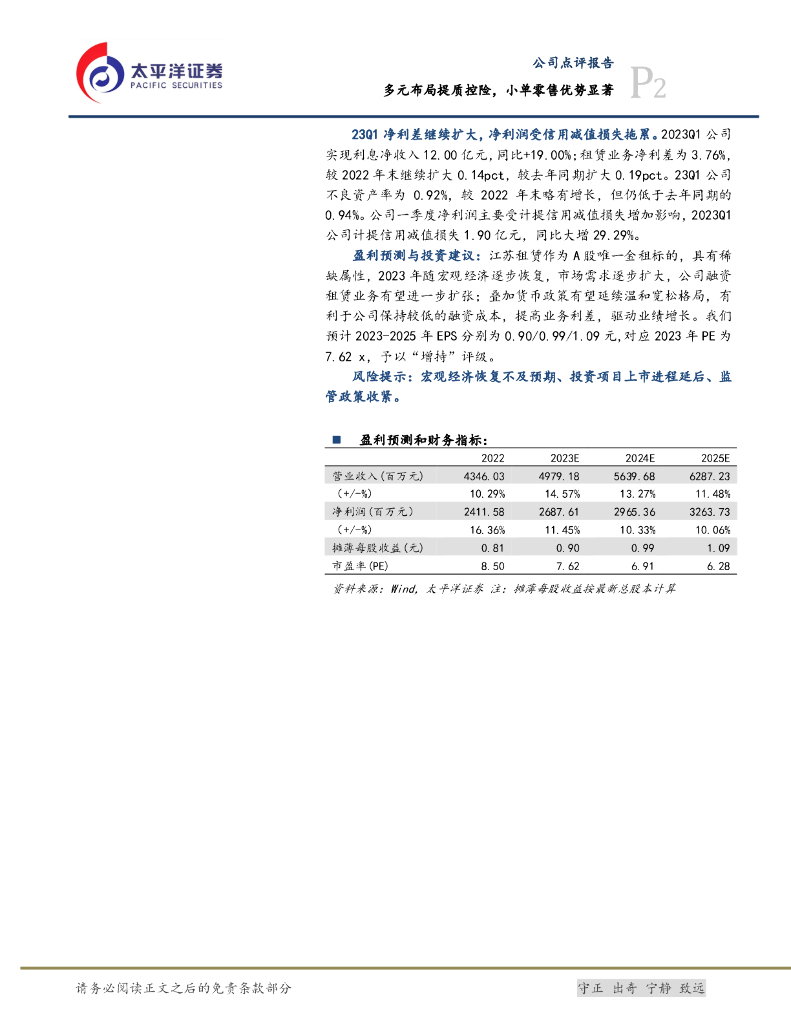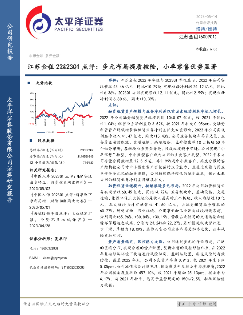 太平洋证券:江苏金租22&23Q1点评:多元布局提质控险,小单零售优势显著.pdf