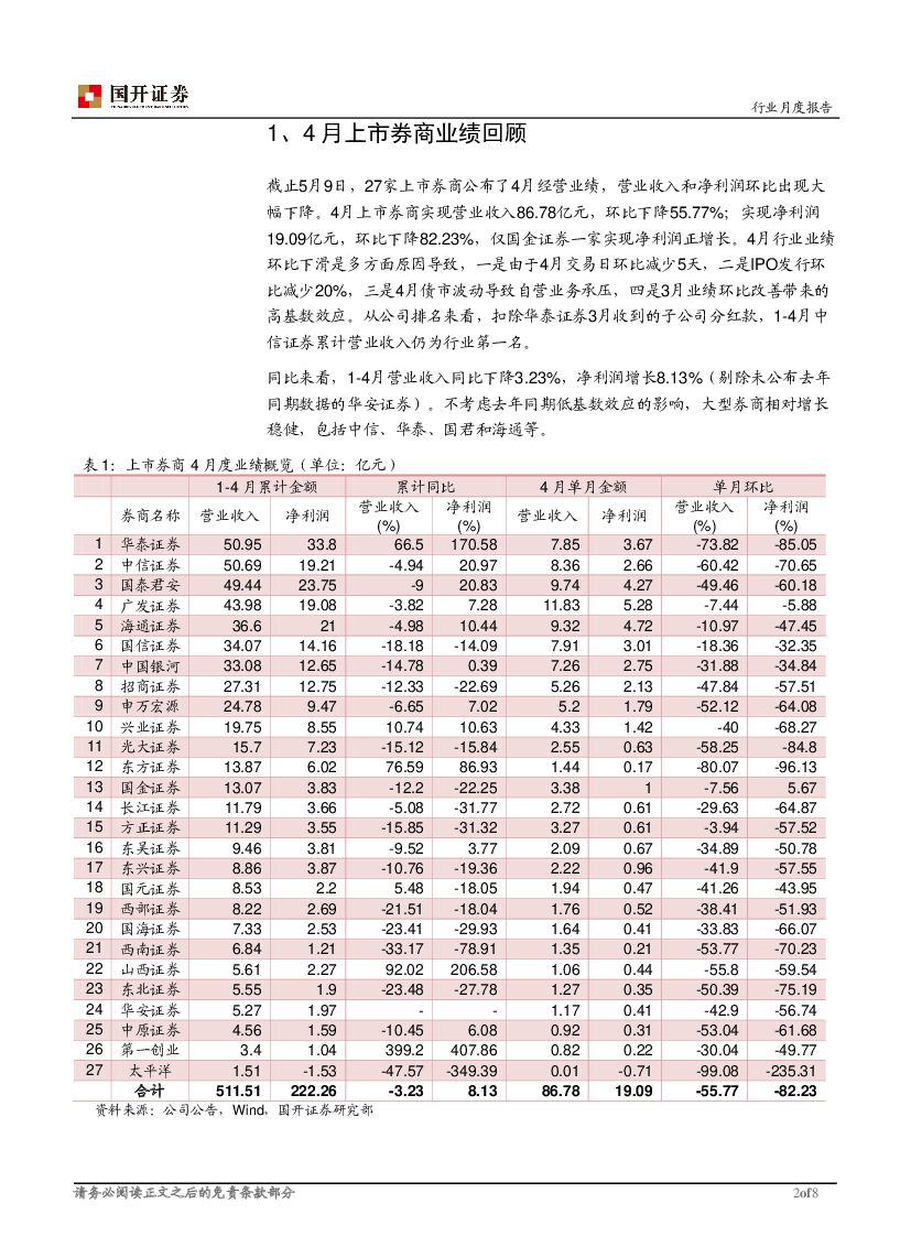 国开证券:证券Ⅱ行业月度报:4月业绩欠佳 接近估值底部.pdf
