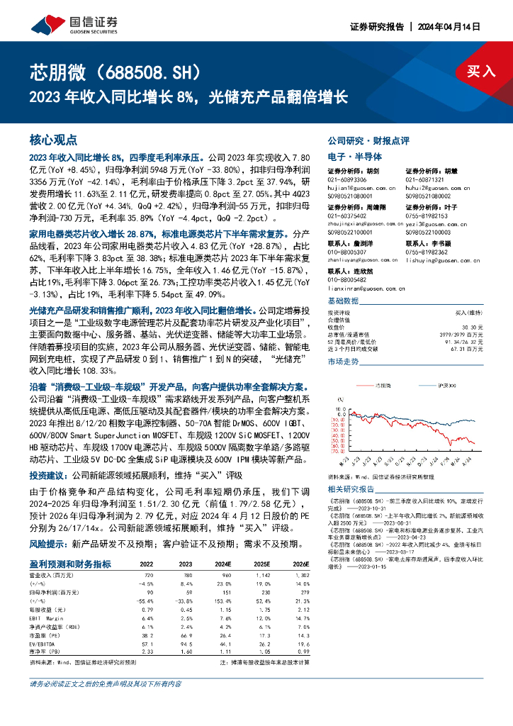 国信证券:芯朋微(688508)-2023年收入同比增长8%,光储充产品翻倍增长.pdf
