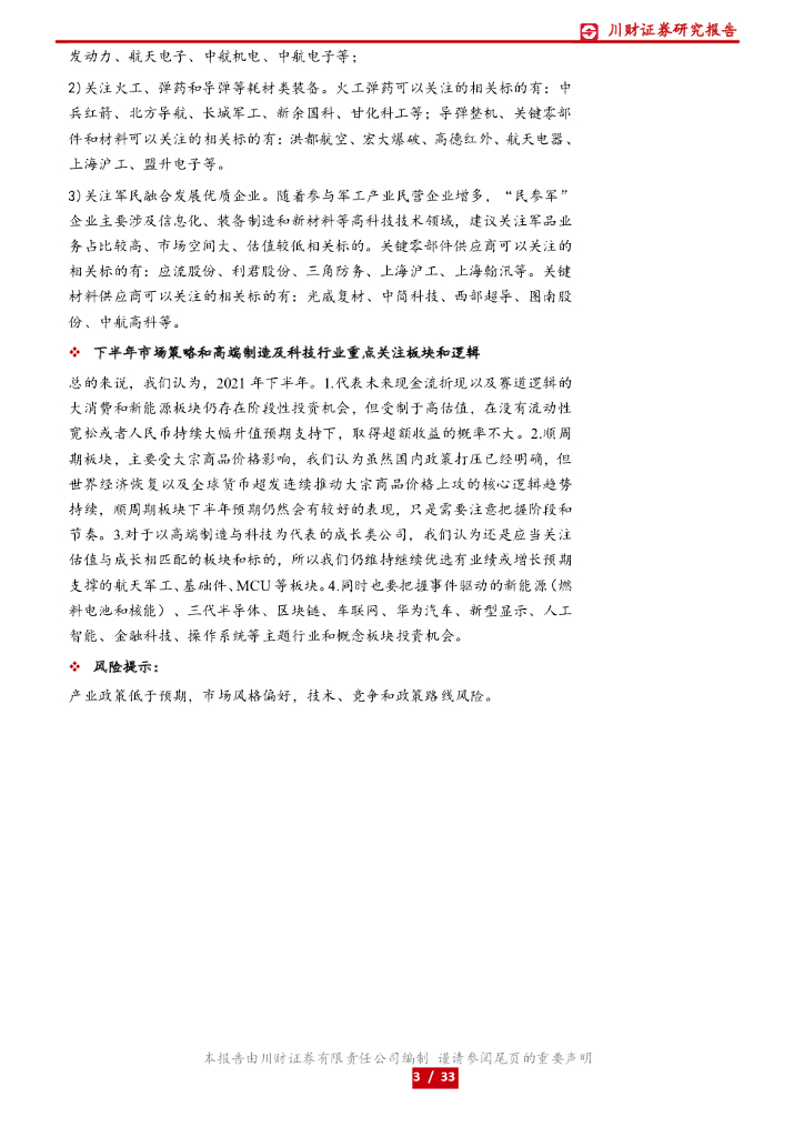 川财证券:高端制造与科技行业2021年中期投资策略:聚焦数字化和进口替代,优选估值与成长匹配的标的.pdf