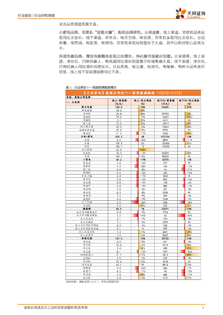天风证券:家用电器23W47周度研究:双十一销售情况汇总&点评.pdf