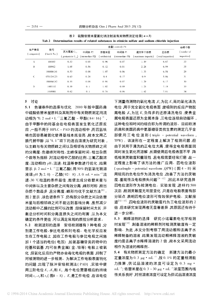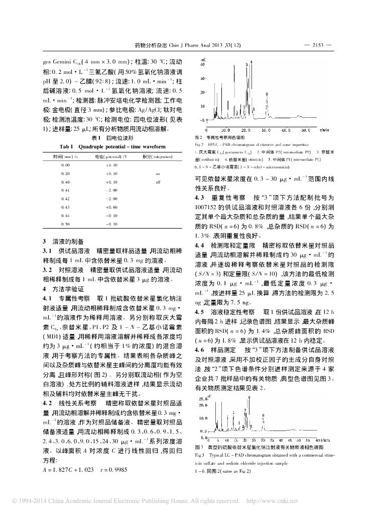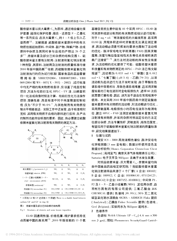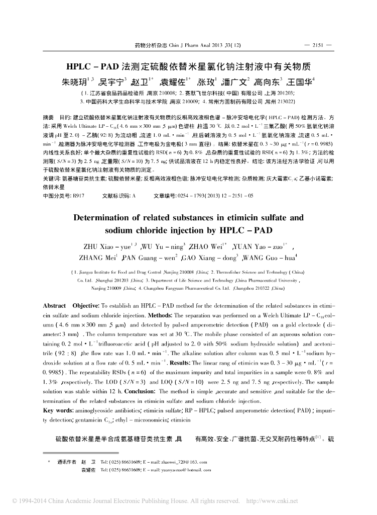 《药学的生物化学基础》HPLC-PAD 法测定硫酸依替米星氯化钠注射液中有关物.pdf