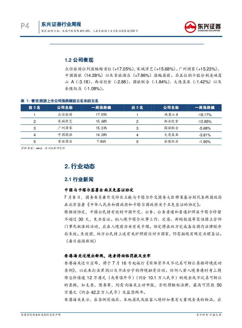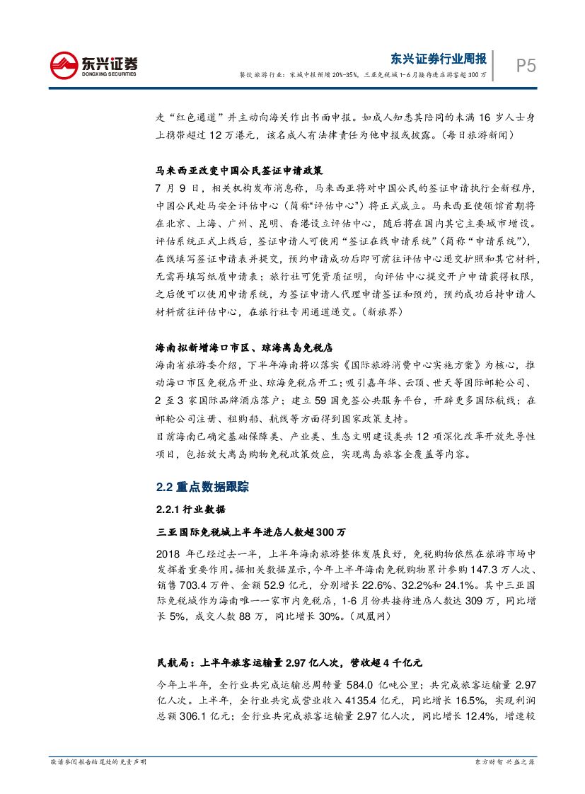 东兴证券:餐饮旅游行业2018年7月第2周周报:宋城中报预增20%-35%,三亚免税城1-6月接待进店游客超300万.pdf