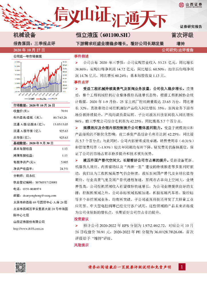 山西证券:恒立液压(601100)-下游需求旺盛业绩稳步增长,看好公司长期发展.pdf