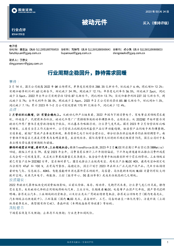国金证券:被动元件行业点评:行业周期企稳回升,静待需求回暖.pdf