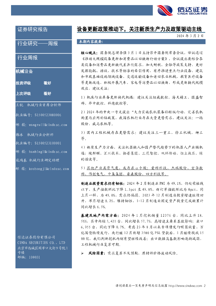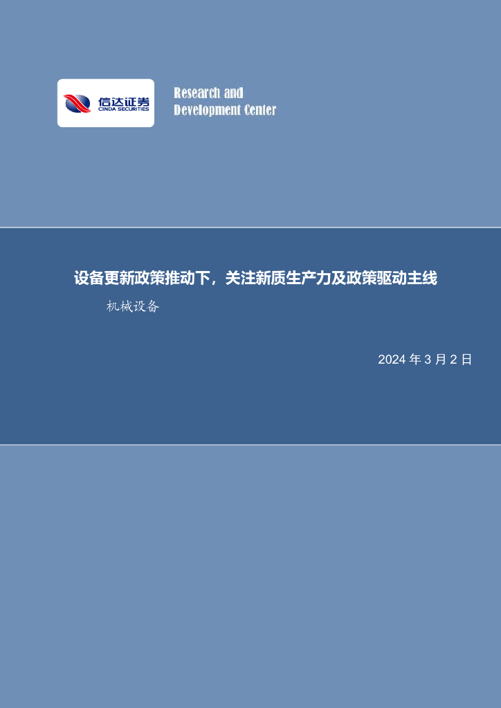 信达证券:设备更新政策推动下,关注新质生产力及政策驱动主线机械设备.pdf